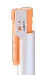 訂正印サイズのネーム印。ボールペンのようにノックすることで印面部が飛び出し、狙った箇所に確実に押印できます。クリップがついて携帯性に優れているのも便利。