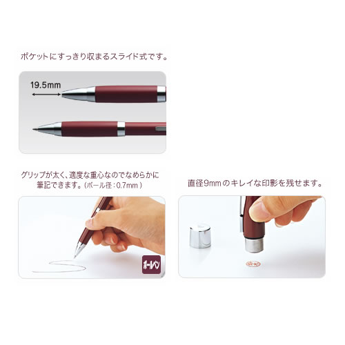 片手で印面キャップを開閉できるワンタッチスライド方式を採用したネームペンです。