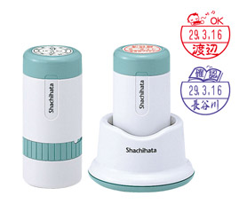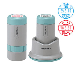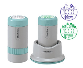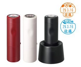 回覧や領収書、検印、薬袋など、事務所で大活躍の日付印です。印面は少し大きめの18mmで文字が見やすいサイズです。ボディはキャップ式とスタンド式からお選びいただけます。